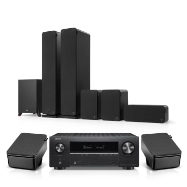 Speelklare 5.1.2 complete set met Denon AV-receiver AVC-X3800H, vloerstaanders ULTIMA 40 serie (Mk4) met subwoofer, center, en Dolby Atmos REFLEKT 2 reflectiespeakers voor een top-notch home cinema ervaring